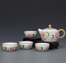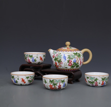 珐琅彩瓜瓞(die)绵绵描金茶壶套组