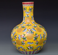 珐琅彩黄地团寿纹天球瓶