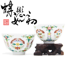 蝶恋如初珐琅彩番花对蝶杯