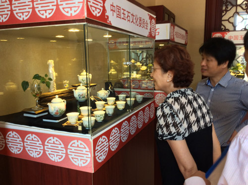 大使夫人正在津津乐道的欣赏“十二花神杯”