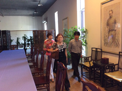 大使夫人在逸淸轩和栖雅轩观赏何宝森先生的画