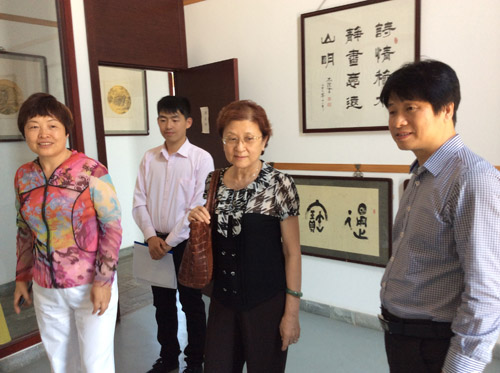 在何宝森先生的画室里,大使夫人和孙赫阳先生合影留念
