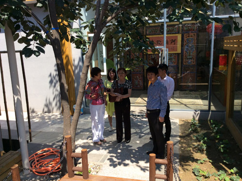 孙赫阳先生陪同大使夫人一起关赏清华阁的后院