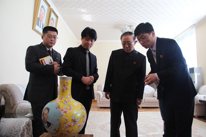 2015年4月,政合宫宫廷珐琅彩为金正恩定制一件瓷胎画珐琅瓷器,在历经八个月的时间,反复进行设计、绘画和烧制实验,最终烧制成功并移交至朝鲜驻华大使馆。