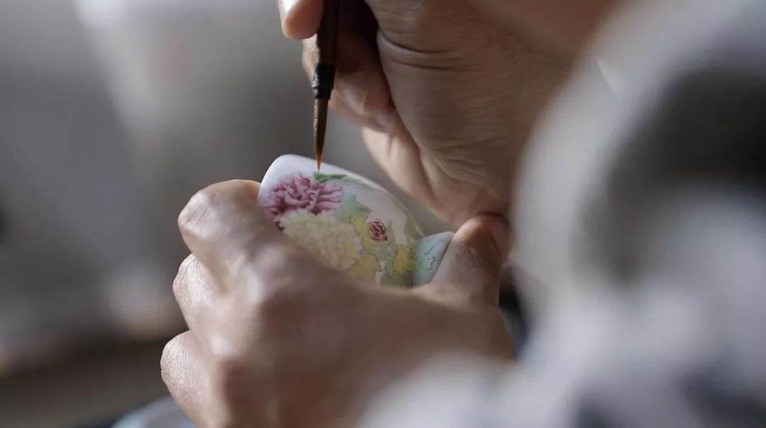 做好宫廷珐琅彩,需要心、手、眼的高度配合,更需要静心,宫廷珐琅彩的匠人们产出优质之作,正是因为在一道道工序中找到了内心的抵达之处。政合宫宫廷珐琅彩新十二花神杯采用高岭土烧制,瓷质细腻,呈现质感犹如糯米一般,因受高岭土特性及造型要求限制,白胎分四次烧制完成,每次烧制都使用与瓷杯相同材质的高岭土所制作的模具,以保证杯口与底足不变形。即使这样,瓷杯的成品率还是比较低,容易塌陷和变形。此杯胎体轻薄,直口,弧腹,釉足。上壁薄下壁厚,有压手感。杯型渊源于霸王虞姬的典故,男杯外部曲线型似男性威武阳刚,称为“霸王杯”,指代西楚霸王;女杯外部型似女性柔美曲线,称为“玉女杯”,指代虞姬。