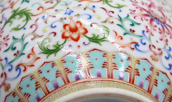 底足有红料彩双方栏“政合宫”三字篆书款。