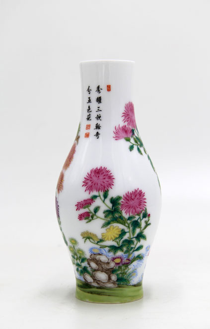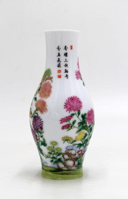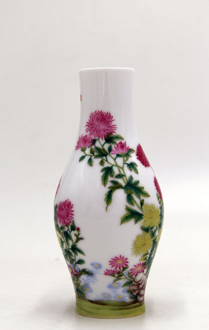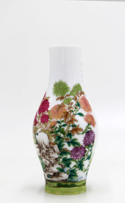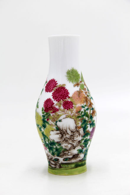 珐琅彩菊花奇石图橄榄瓶