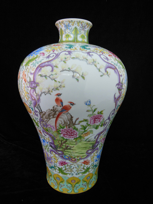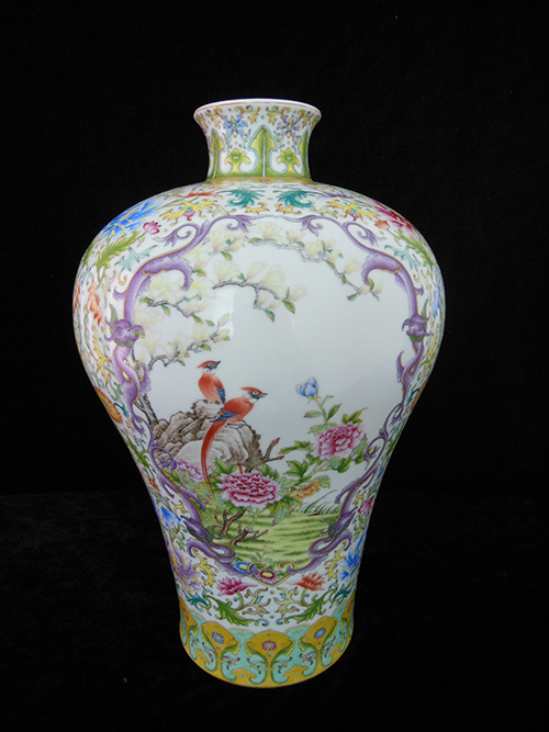 A Enamel Porcelain Plum Vase with Flower and Bird Design