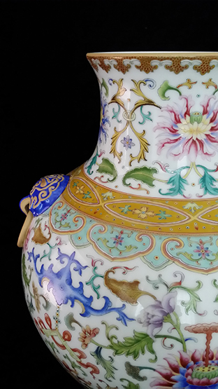 A Enamel Porcelain Elephant Ears Zun with Golden Intertwining Lotus Patterns