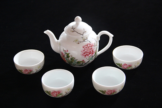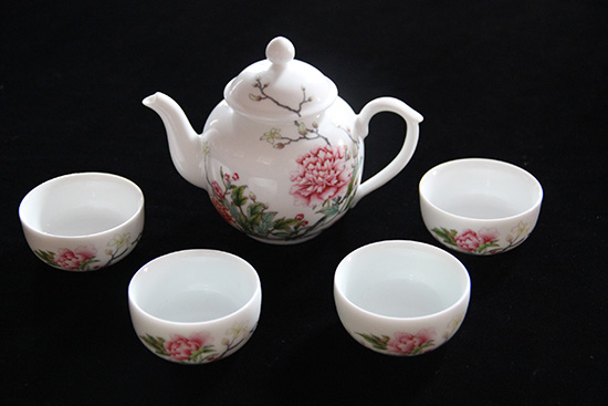 珐琅彩牡丹图茶壶套装