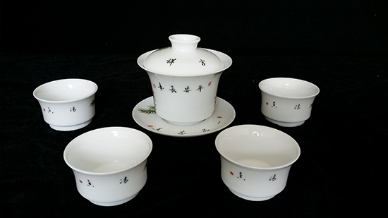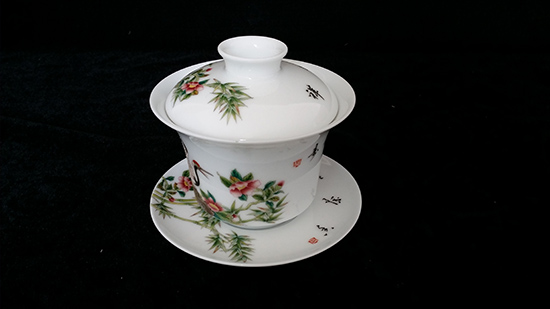 盖碗:口径:9.5cm 足径:4.5cm 器高:6 cm 单杯:口径:7cm 足径:3cm 器高:4cm